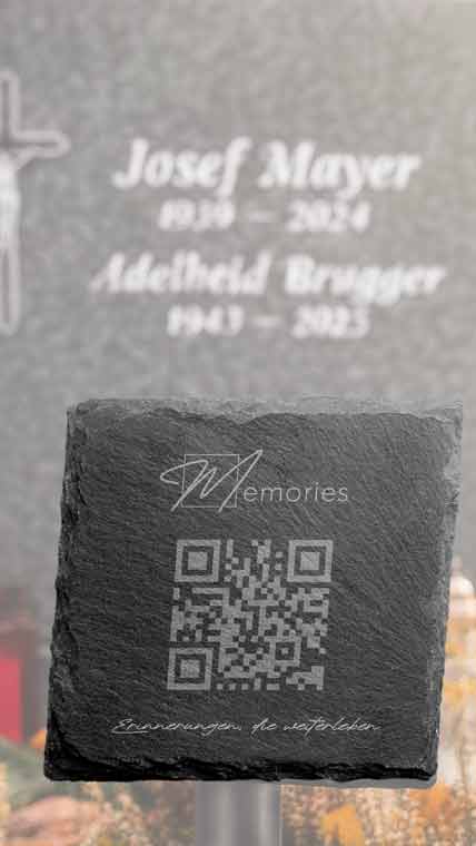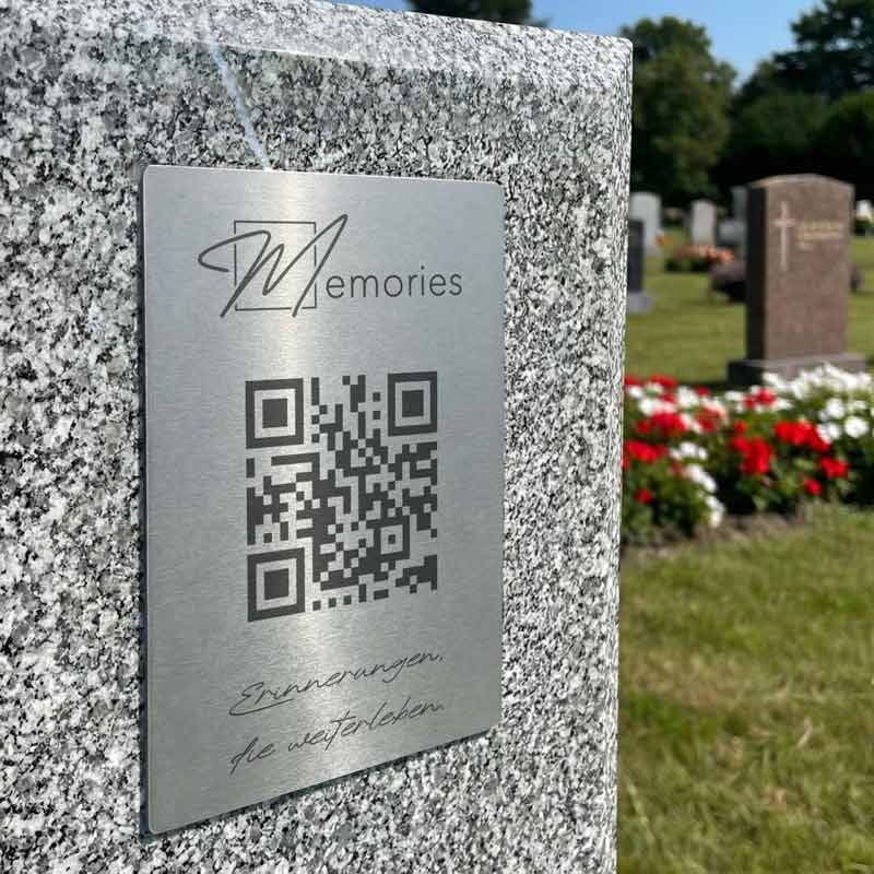 Mit Memories bewahren Sie diese Momente. Eine elegante Plakette mit QR-Code an der Gedenkstätte – ein Scan mit dem Smartphone, und Sie erleben die wertvollsten Momente noch einmal. Sicher gespeichert. Jederzeit abrufbar. Für mindestens 10 Jahre.